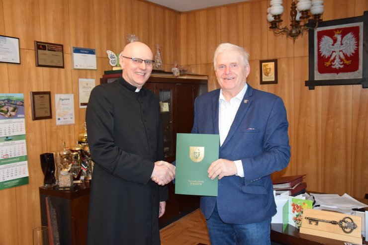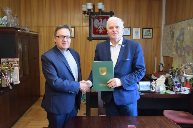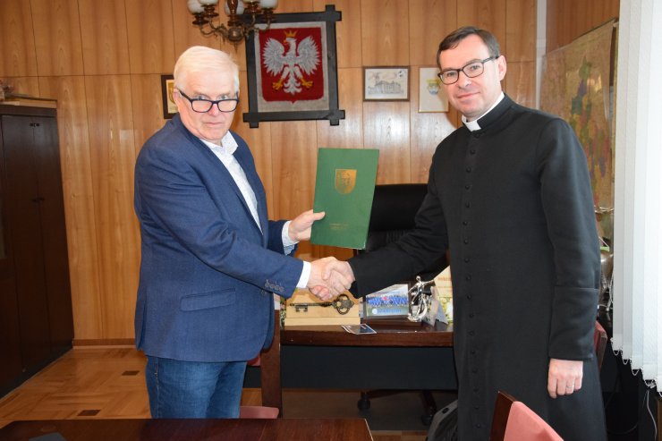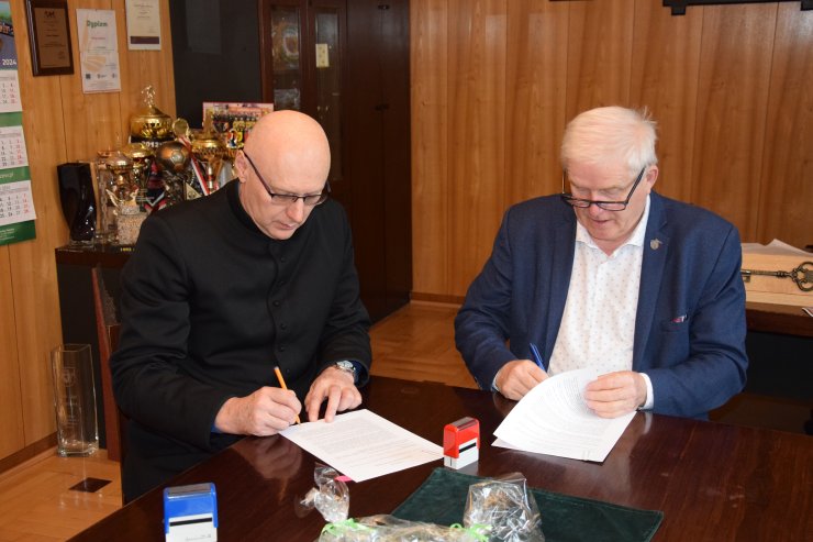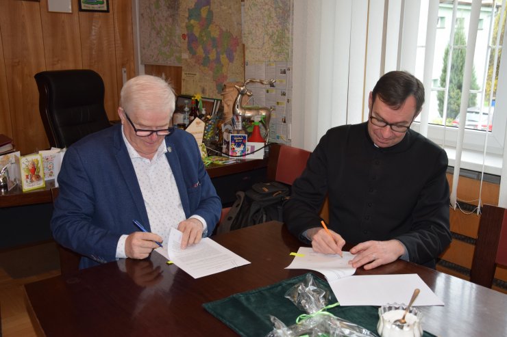 Burmistrz Gminy Stęszew Włodzimierz Pinczak podpisał umowy na dofinansowanie remontów czterech zabytków w gminie z ks. Andrzejem Stefańskim proboszczem Parafii pw. św. Barbary w Tomicach, z ks. Mirosławem Skórnickim proboszczem Parafii Słupia pw. Wszystkich Świętych oraz z ks. Romualdem Turbańskim proboszczem Parafii Modrze pw. Św. Idziego.