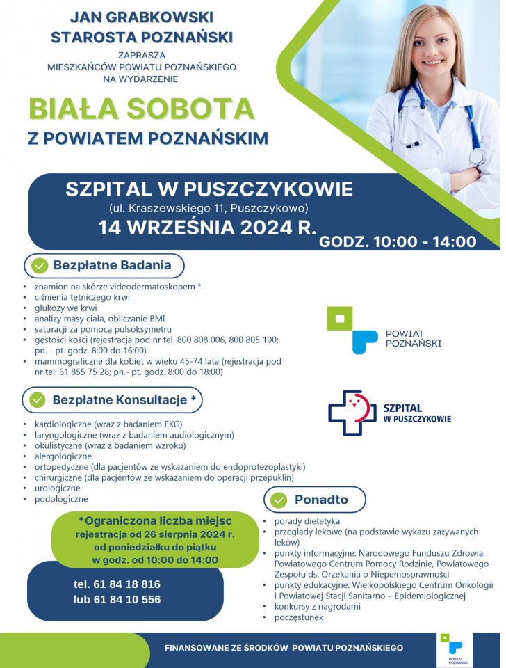 Starosta Poznański zaprasza mieszkańców powiatu poznańskiego na „Białą Sobotę z Powiatem Poznańskim”.